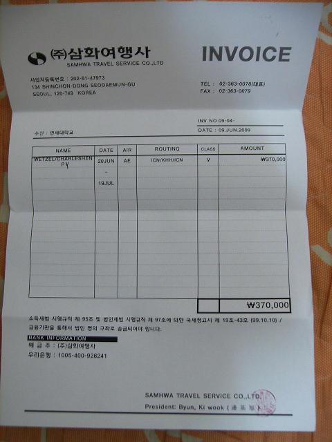 I just reserved my plane ticket from Korea to Taiwan. It'll be 370,000 won (slightly less than $300). This travel agency says the round-trip and one-way fares are the same, so I'm going with a round-trip ticket just in case.